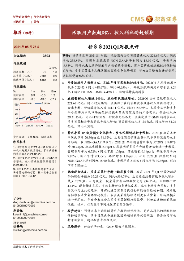 【海通证券】【20210527】拼多多2021Q1财报点评:活跃用户数超8亿,收入利润均超预期-2页