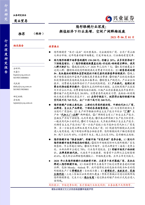 【兴业证券】【20210601】隐形眼镜行业深度:颜值经济下行业高增,空间广阔群雄逐鹿-31页