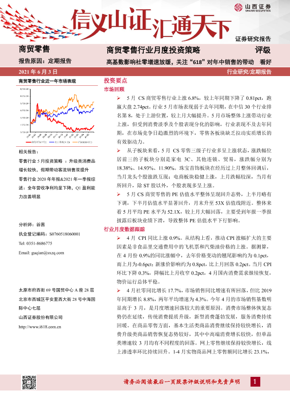 【山西证券】【20210603】商贸零售行业月度投资策略:高基数影响社零增速放缓,关注“618”对年中销售的带动-16页