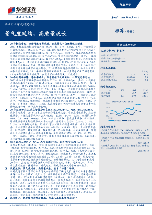 【华创证券】【20210604】物业行业深度研究报告:景气度延续,高质量成长-17页