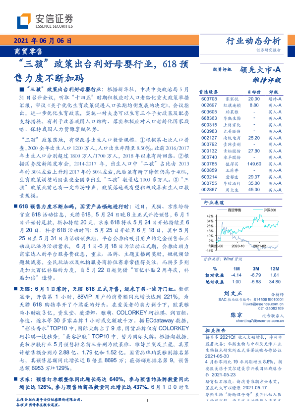 【安信证券】【20210606】“三孩”政策出台利好母婴行业,618预售力度不断加码-17页