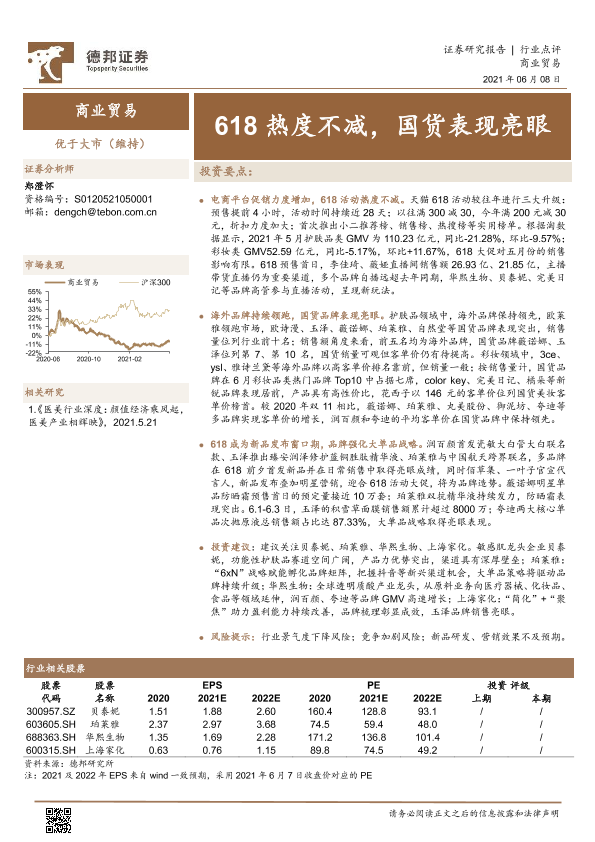 【德邦证券】【20210608】商业贸易行业:618热度不减,国货表现亮眼-9页