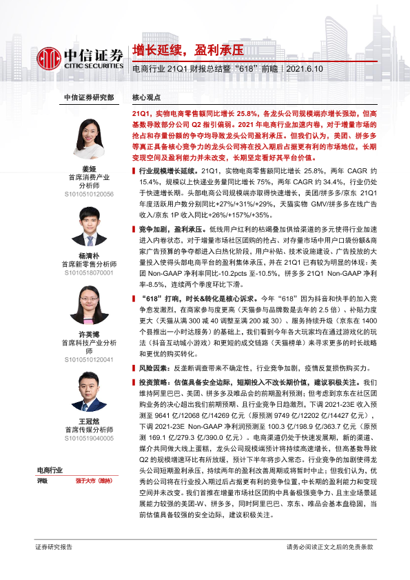 【中信证券】【20210610】电商行业21Q1财报总结暨“618”前瞻:增长延续,盈利承压-22页