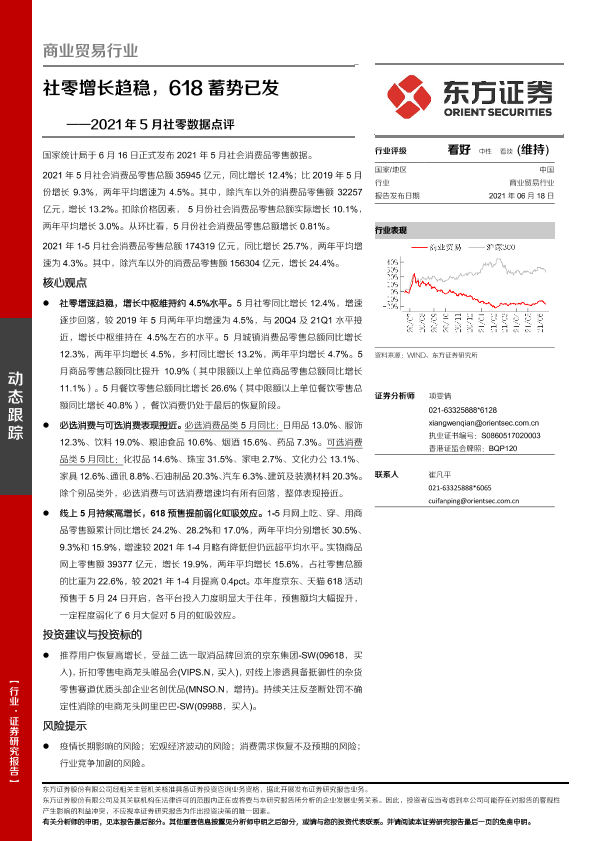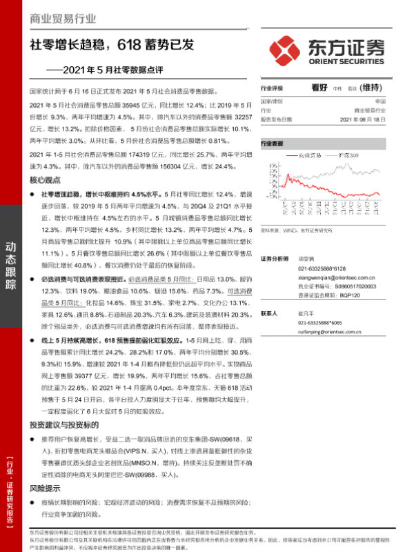 【东方证券】【20210618】2021年5月社零数据点评:社零增长趋稳,618蓄势已发-7页