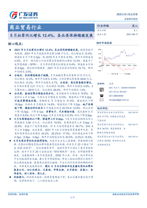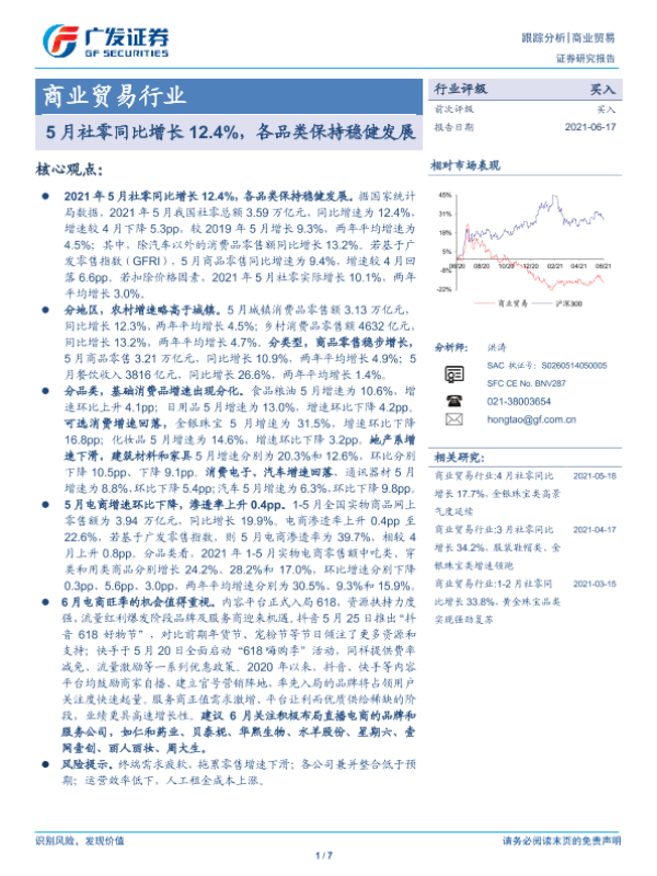 【广发证券】【20210617】5月社零同比增长12.4%,各品类保持稳健发展-7页
