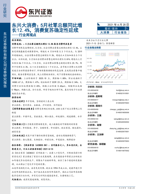 【东兴证券】【20210620】5月社零总额同比增长12.4%,消费复苏确定性延续-12页