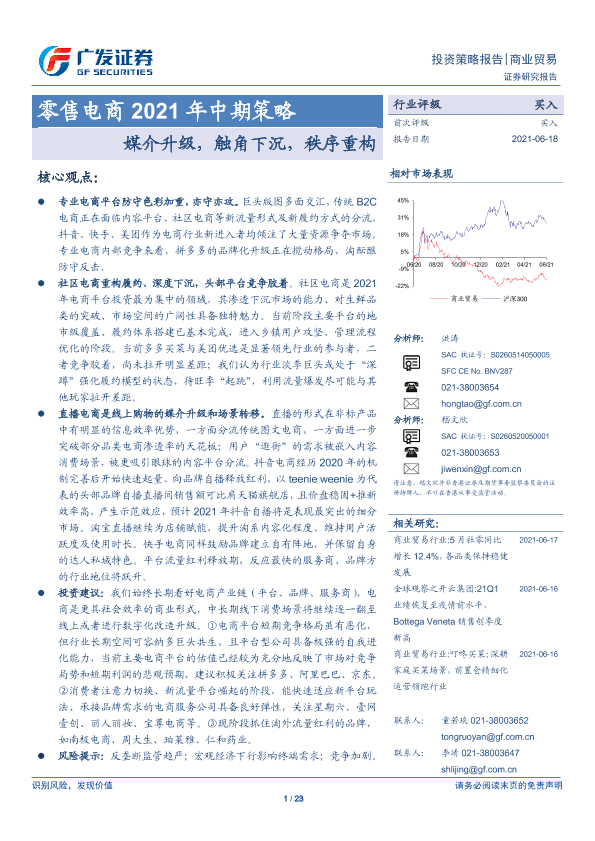 【广发证券】【20210618】零售电商2021年中期策略:媒介升级,触角下沉,秩序重构-23页