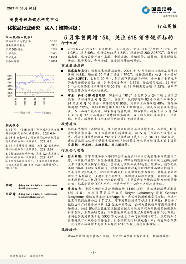【国金证券】【20210620】5月零售同增15%,关注618销售靓丽标的-11页