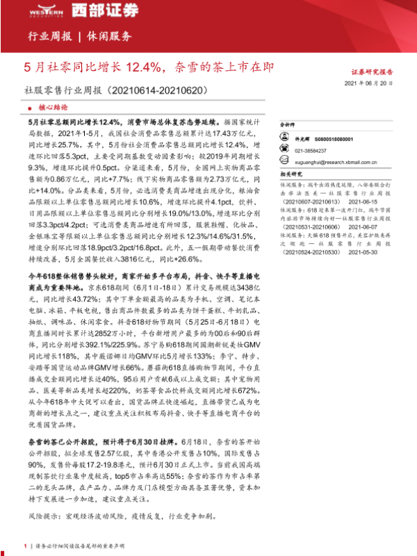 【西部证券】【20210620】5月社零同比增长12.4%,奈雪的茶上市在即-12页