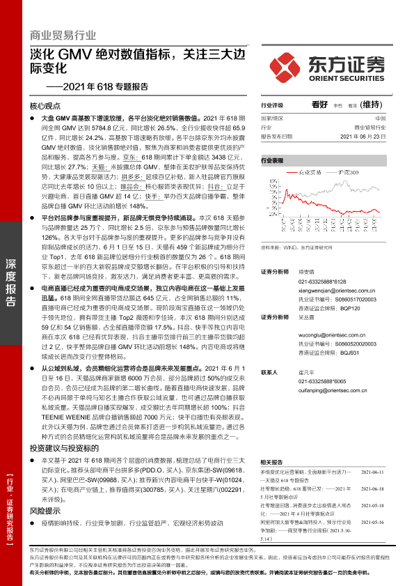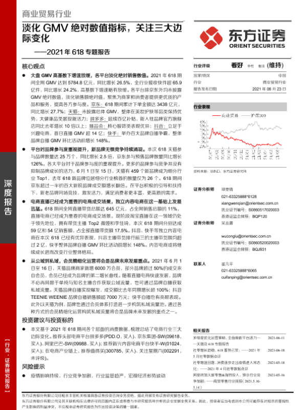 【东方证券】【20210623】2021年618专题报告-淡化GMV绝对数值指标,关注三大边际变化-17页
