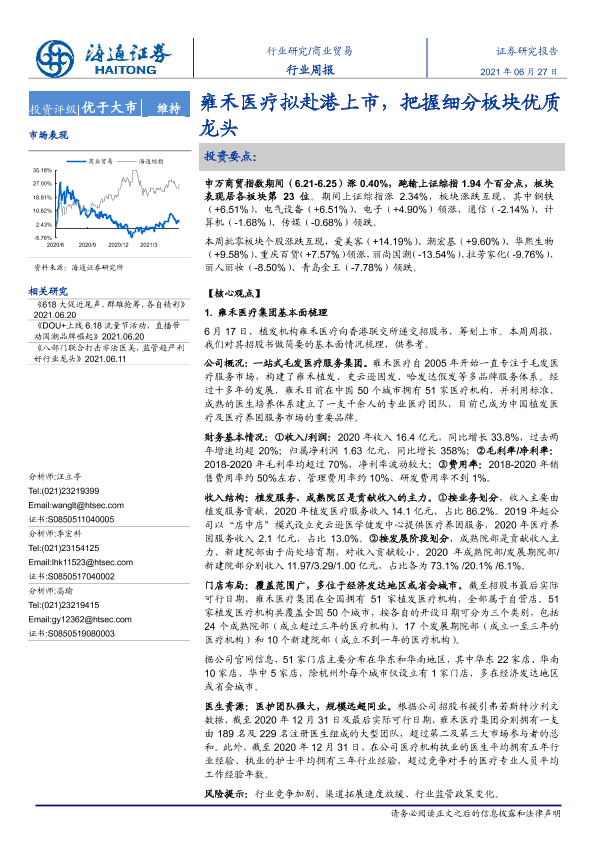 【海通证券】【20210627】商业贸易行业周报:雍禾医疗拟赴港上市,把握细分板块优质龙头-6页