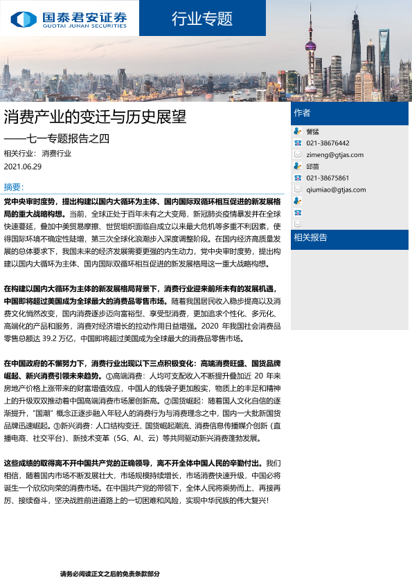 【国泰君安证券】【20210629】消费产业的变迁与历史展望-8页