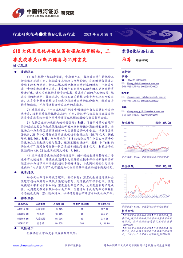 【银河证券】【20210628】零售&化妆品行业:618大促表现优异佐证国妆崛起趋势渐起,三季度淡季关注新品储备与品牌宣发-24页