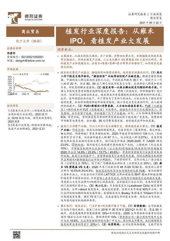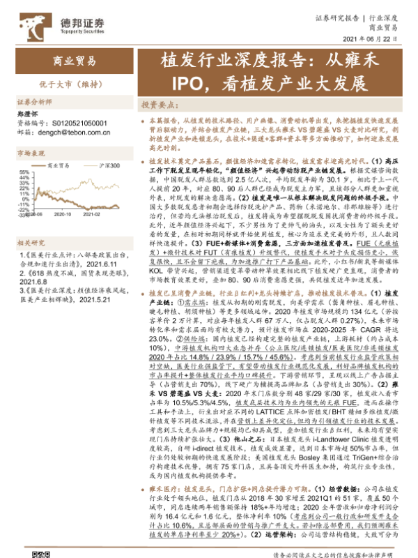 【德邦证券】【20210622】植发行业深度报告:从雍禾IPO,看植发产业大发展-49页