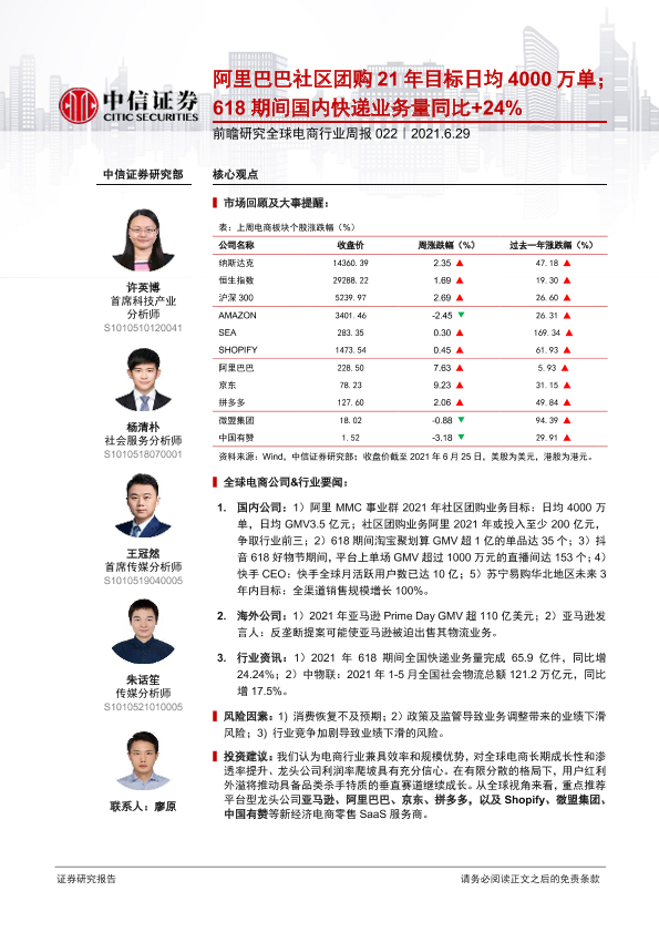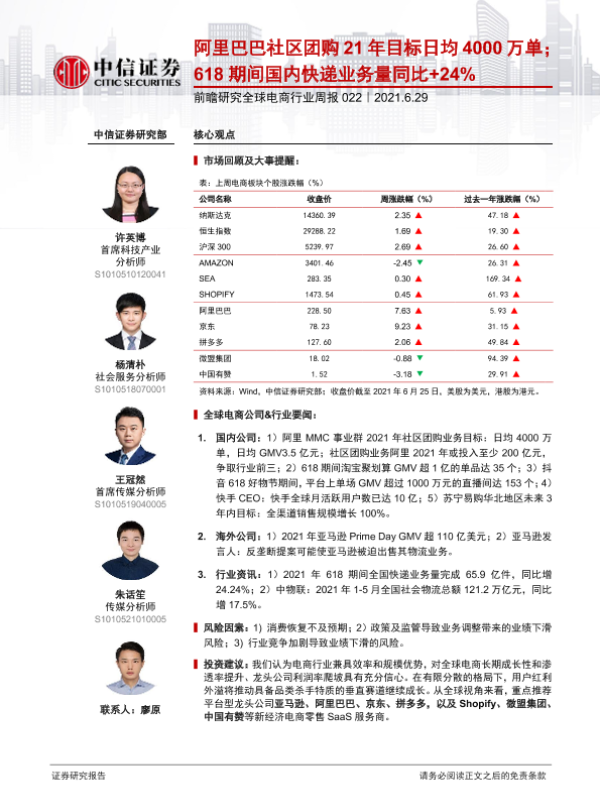 【中信证券】【20210629】前瞻研究全球电商行业周报-20页