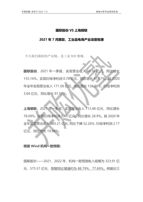 【并购优塾】【20210706】2021年7月跟踪,工业品电商产业深度梳理:国联股份VS上海钢联-25页