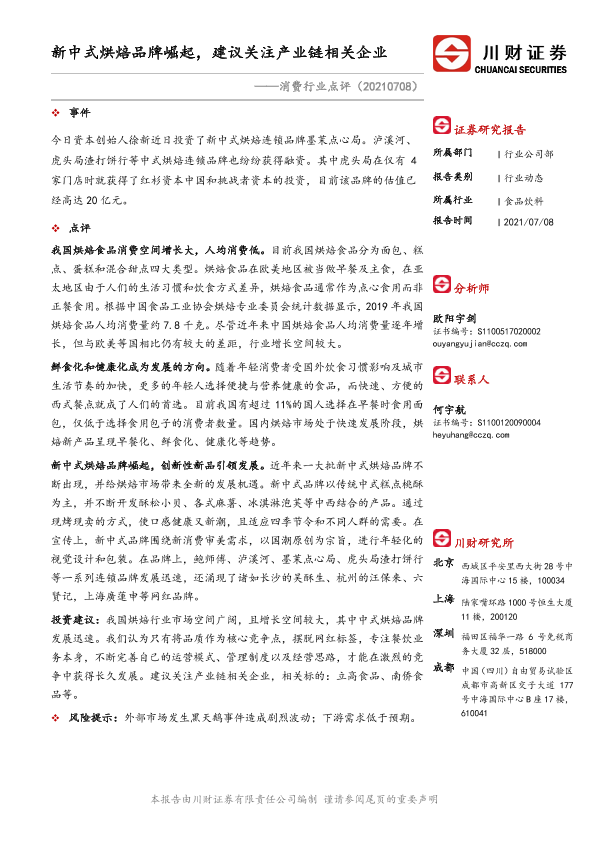 【川财证券】【20210708】消费行业点评:新中式烘焙品牌崛起,建议关注产业链相关企业-2页