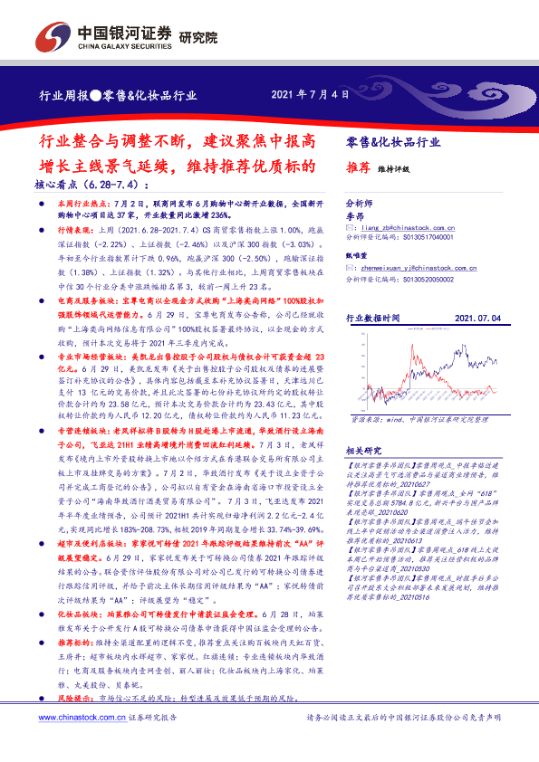 【银河证券】【20210704】零售&化妆品行业周报:行业整合与调整不断,建议聚焦中报高增长主线景气延续-31页