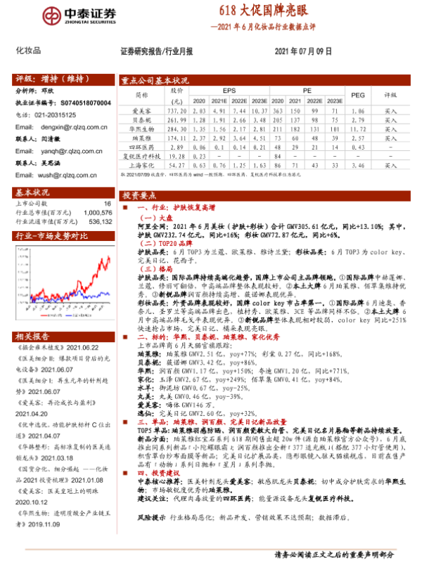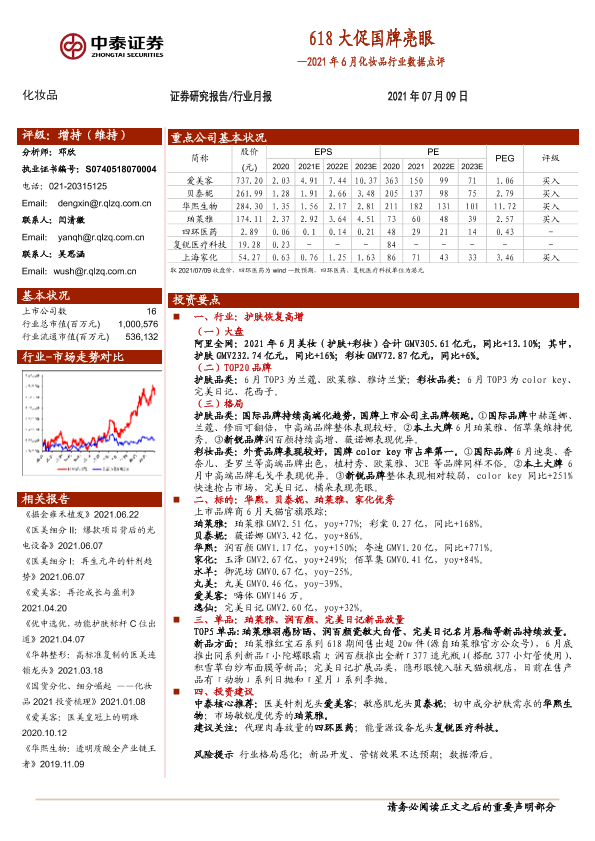 【中泰证券】【20210709】2021年6月化妆品行业数据点评:618大促国牌亮眼-13页