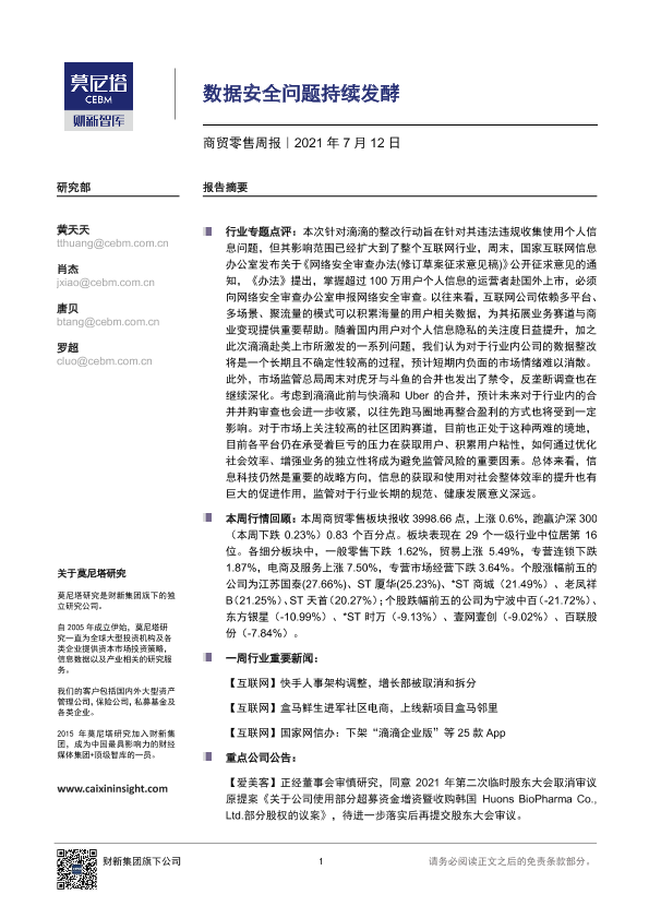 【莫尼塔研究】【20210712】商贸零售周报:数据安全问题持续发酵-6页
