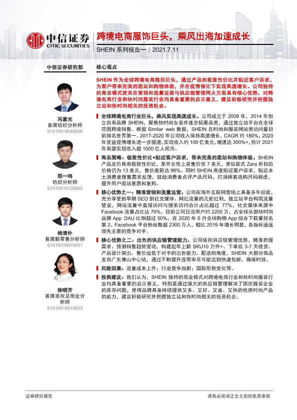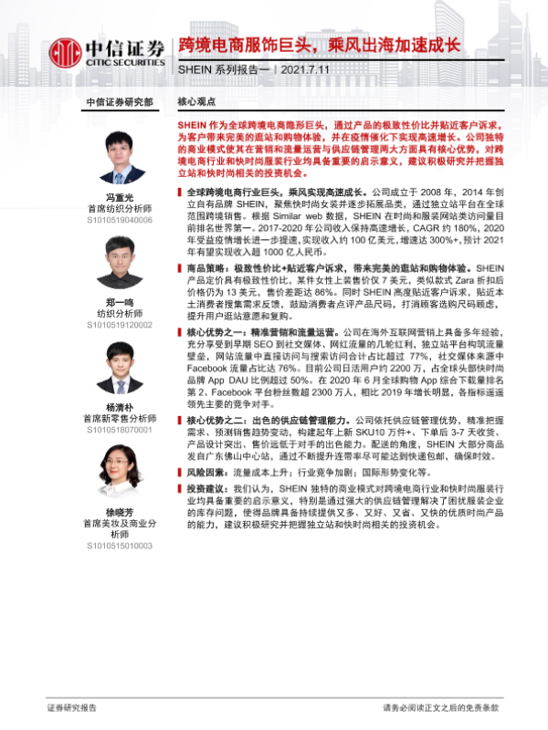 【中信证券】【20210711】SHEIN系列报告一:跨境电商服饰巨头,乘风出海加速成长-21页