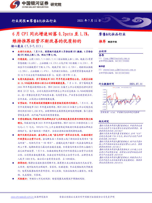 【银河证券】【20210711】6月CPI同比增速回落0.2pcts至1.1%,维持推荐经营不断改善的优质标的-31页