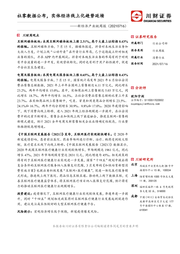 【川财证券】【20210716】新经济产业链周报:社零数据公布,实体经济线上化趋势延续-12页