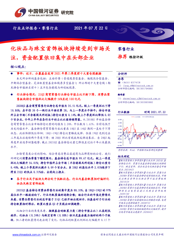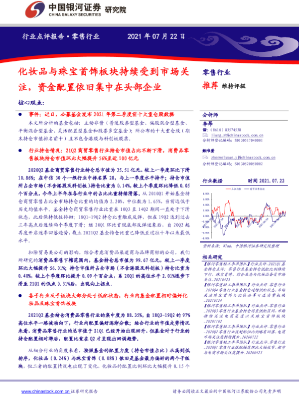 化妆品 基金持仓 头部企业 珠宝首饰 零售行业