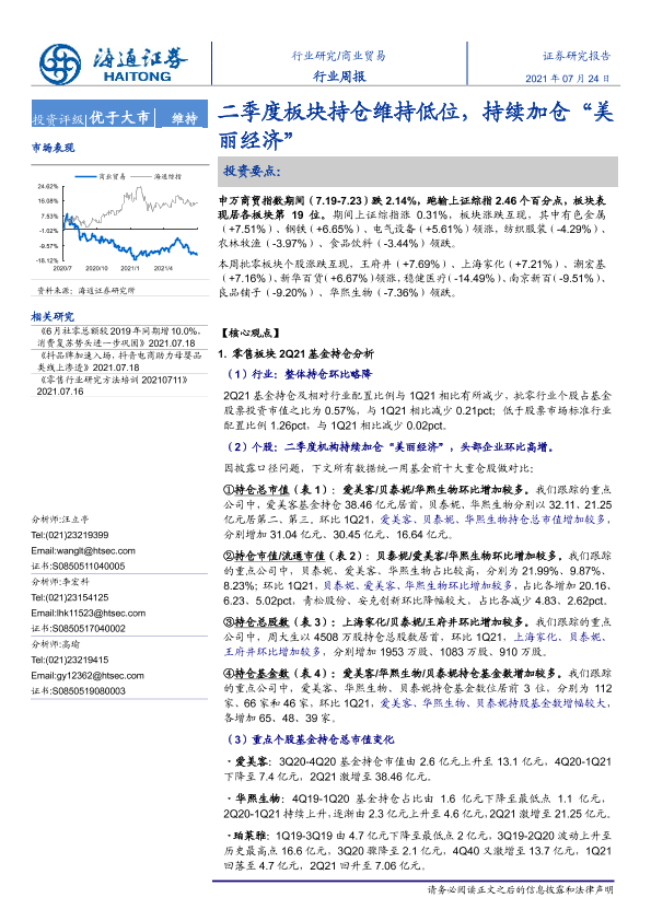 【海通证券】【20210724】二季度板块持仓维持低位,持续加仓“美丽经济”-11页