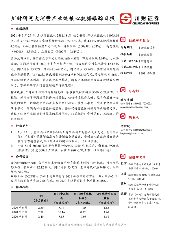 【川财证券】【20210727】大消费产业链核心数据跟踪日报-4页