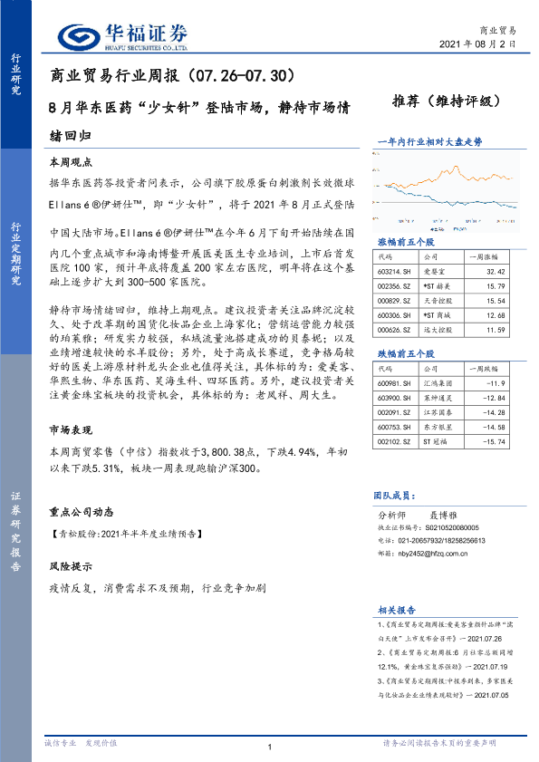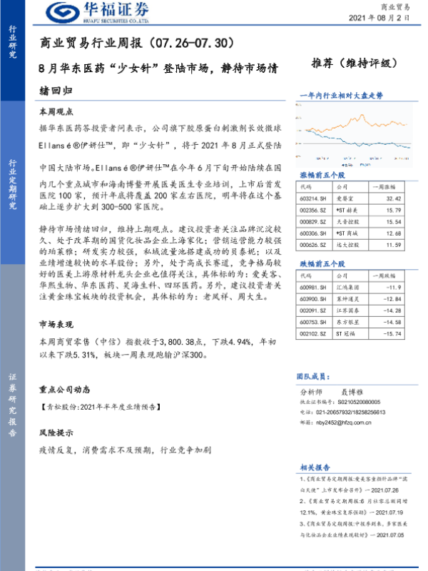 【华福证券】【20210802】商业贸易行业周报:8月华东医药“少女针”登陆市场,静待市场情绪回归-6页