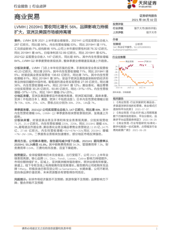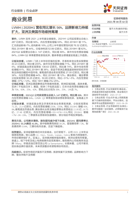 【天风证券】【20210802】LVMH 2020H1营收同比增长56%,品牌影响力持续扩大,亚洲及美国市场维持高增-6页