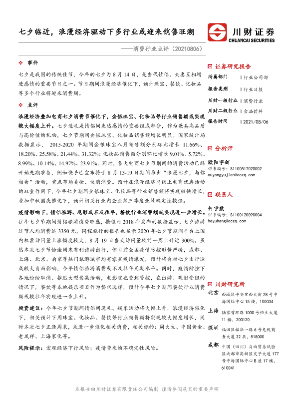 【川财证券】【20210806】消费行业点评:七夕临近,浪漫经济驱动下多行业或迎来销售旺潮-2页