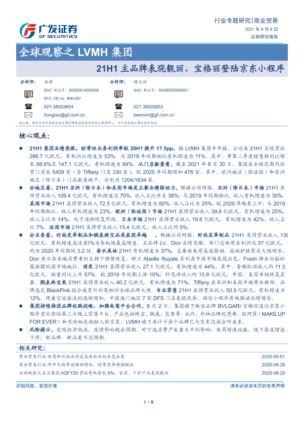 【广发证券】【20210808】全球观察之LVMH集团-21H1主品牌表现靓丽,宝格丽登陆京东小程序-5页