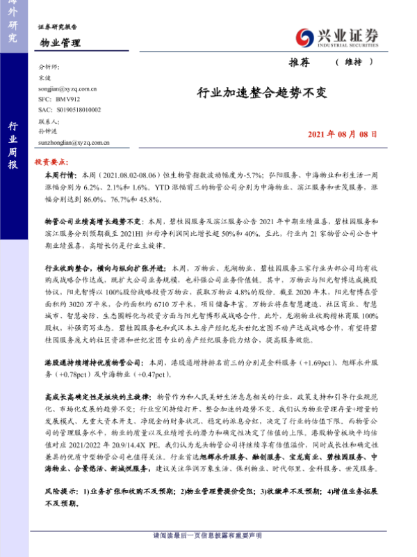 【兴业证券】【20210808】物业管理行业周报:行业加速整合趋势不变-8页