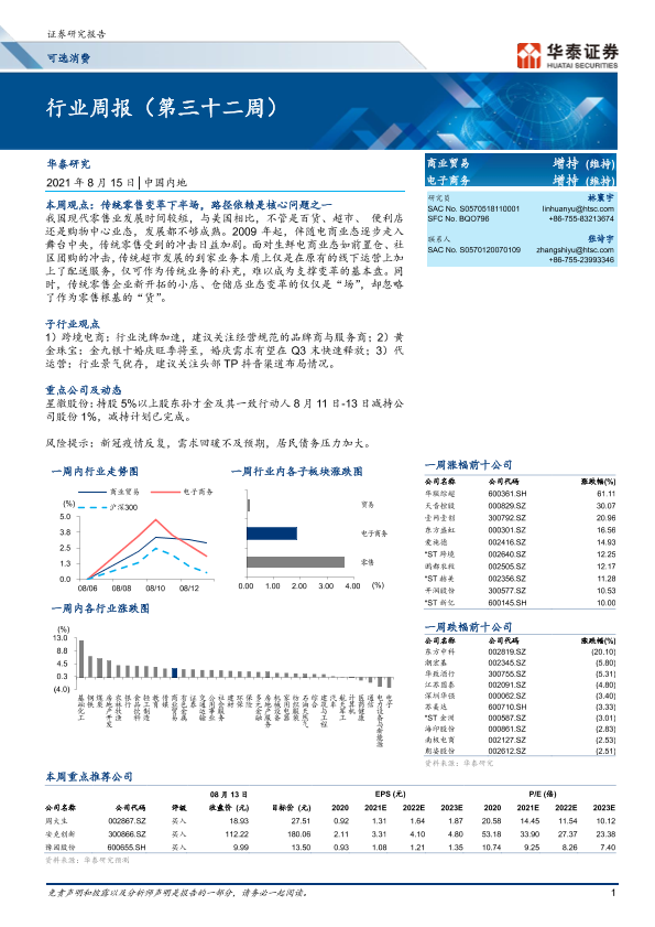 【华泰证券】【20210815】商业贸易行业周报(第三十二周)-12页