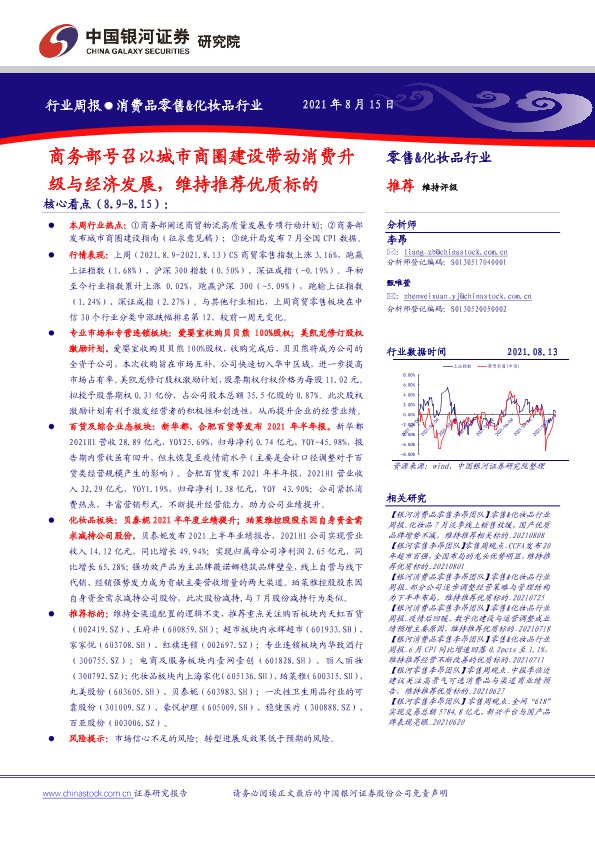 【银河证券】【20210815】消费品零售&化妆品行业周报:商务部号召以城市商圈建设带动消费升级与经济发展,维持推荐优质标的-34页