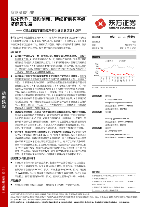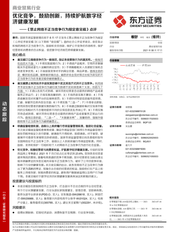 【东方证券】【20210817】《禁止网络不正当竞争行为规定意见稿》点评-优化竞争,鼓励创新,持续护航数字经济健康发展-3页