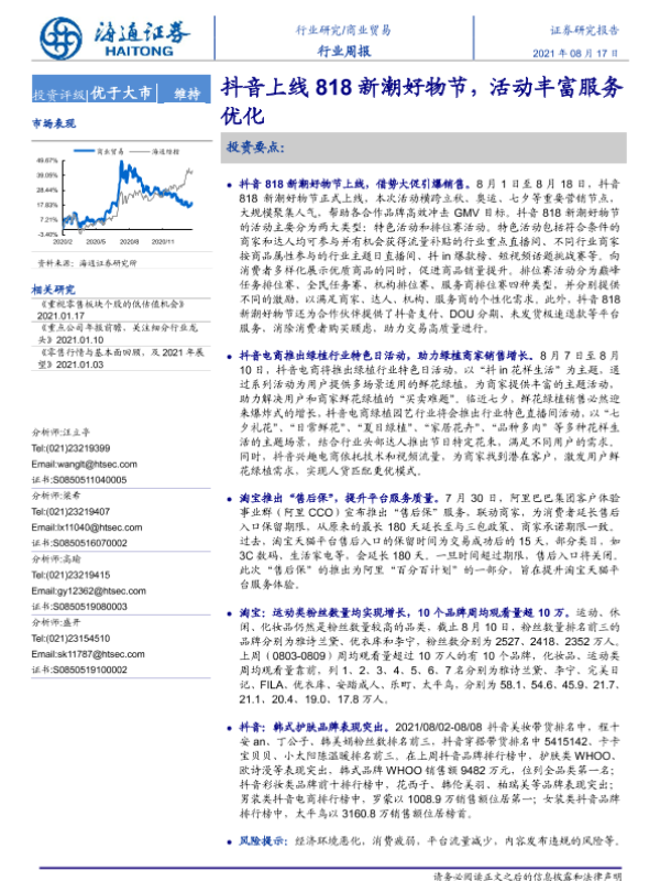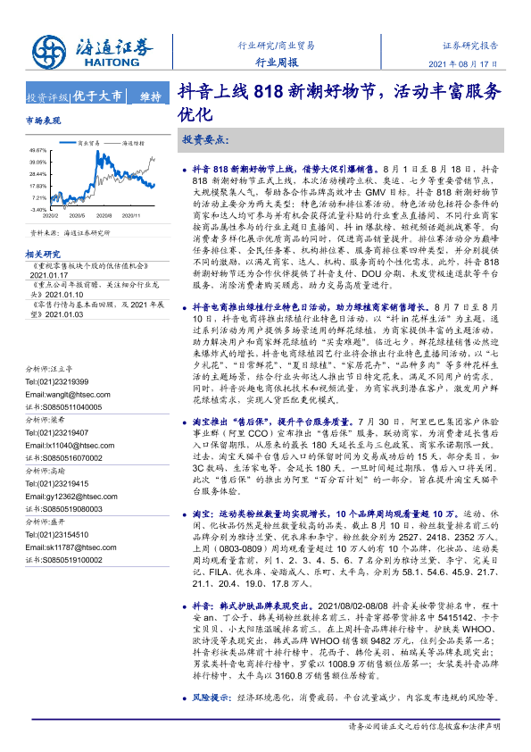 【海通证券】【20210817】商业贸易行业周报:抖音上线818新潮好物节,活动丰富服务优化-9页