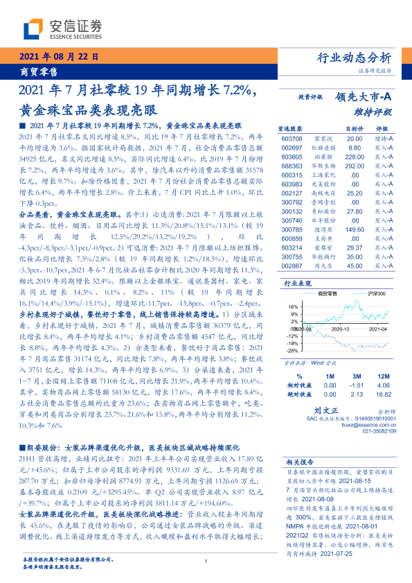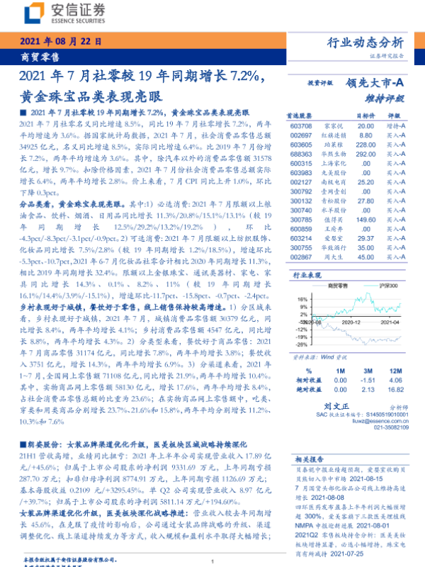 【安信证券】【20210822】2021年7月社零较19年同期增长7.2%,黄金珠宝品类表现亮眼-16页