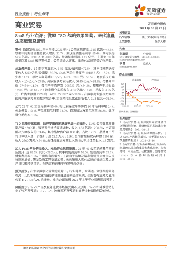 【天风证券】【20210823】商业贸易SaaS行业点评:微盟TSO战略效果显著,深化流量生态运营及营销-6页