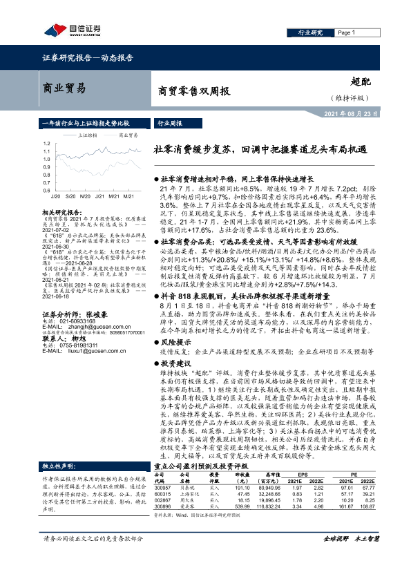 【国信证券】【20210823】商贸零售双周报:社零消费缓步复苏,回调中把握赛道龙头布局机遇-8页