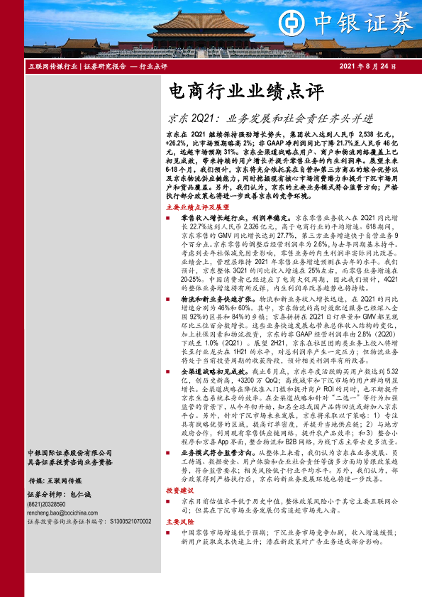 【中银证券】【20210824】电商行业业绩点评:京东2Q21:业务发展和社会责任齐头并进-3页