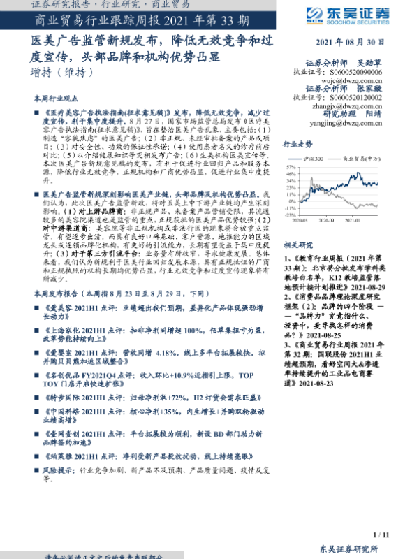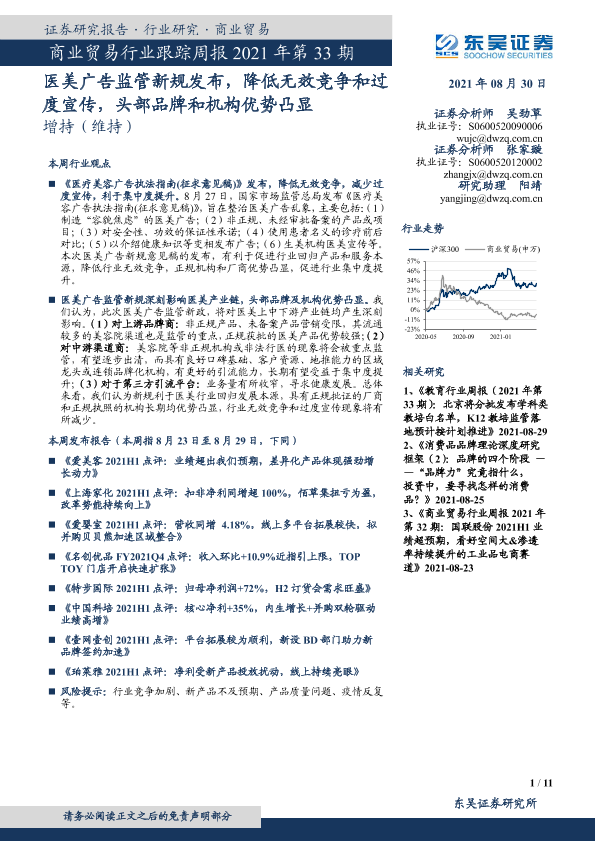 【东吴证券】【20210830】商业贸易行业跟踪周报2021年第33期:医美广告监管新规发布,降低无效竞争和过度宣传,头部品牌和机构优势凸显-11页