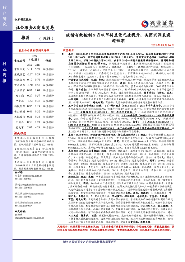 【兴业证券】【20210906】疫情有效控制9月双节将至景气度提升,美团利润表现超预期-20页