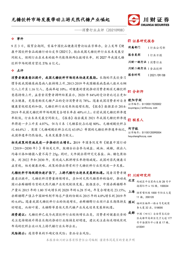 【川财证券】【20210908】消费行业点评:无糖饮料市场发展带动上游天然代糖产业崛起-2页