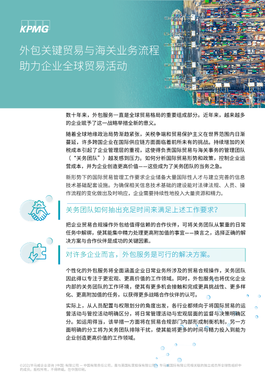 【毕马威企业咨询(中国)有限公司】【2021】外包关键贸易与海关业务流程 助力企业全球贸易活动-4页