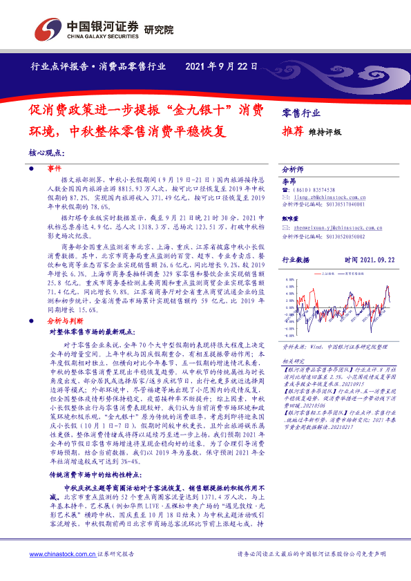 【银河证券】【20210922】促消费政策进一步提振“金九银十”消费环境,中秋整体零售消费平稳恢复-3页