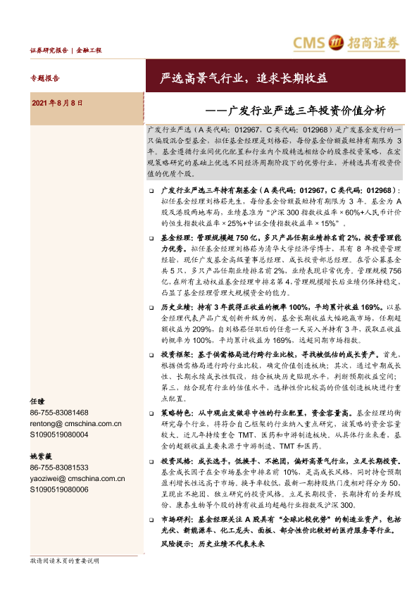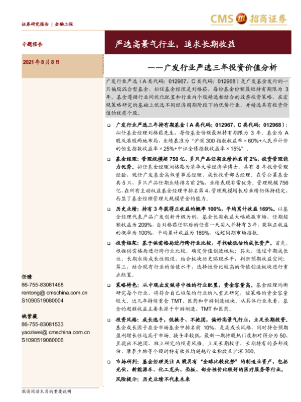 【海通证券】【20210808】广发行业严选三年投资价值分析:严选高景气行业,追求长期收益-16页