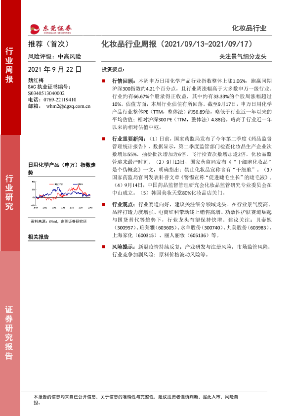 【东莞证券】【20210922】化妆品行业周报:关注景气细分龙头-8页